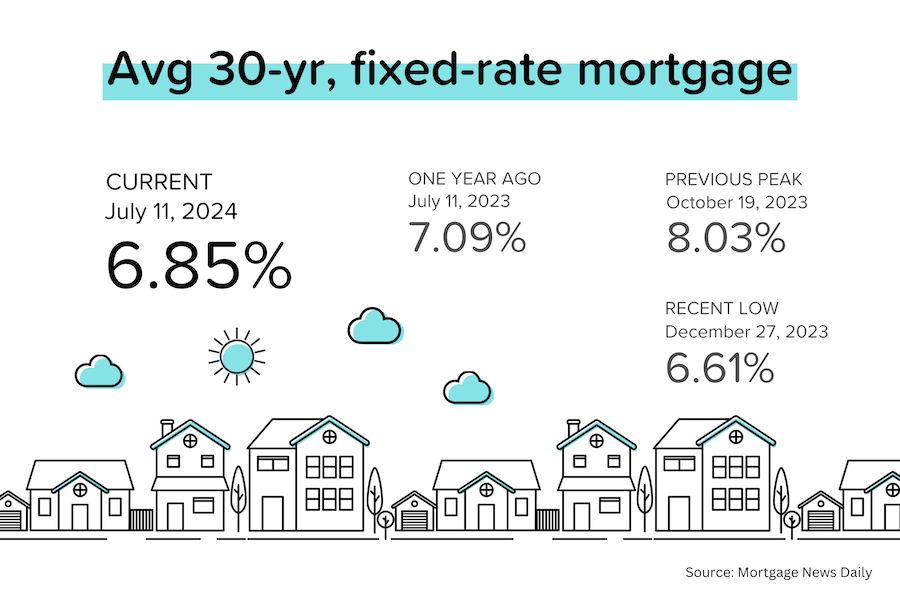 Rate cuts are definitely coming. Fed Chairman Jerome Powell sounded a bit more dovish in his testimony to Congress, and then the CPI inflation report for June came in lower than expected. It is very nice to see 30-yr mortgage rates moving below 7%!